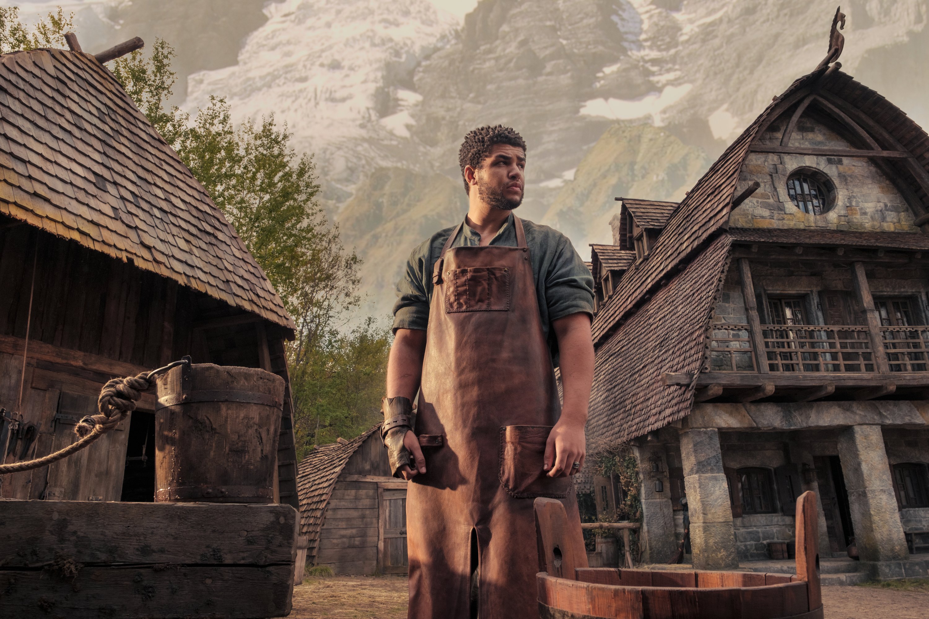 Moving through the mountains, Rand (Josha Stradowski) and his father Tam (Michael McElhatton) lead a cart loaded with supplies to town for the festival of Bel Tine. They reminisce about days past when Rand was just a child, and his mother was alive. They make mention of Rand as a young boy picking berries for Egwene.