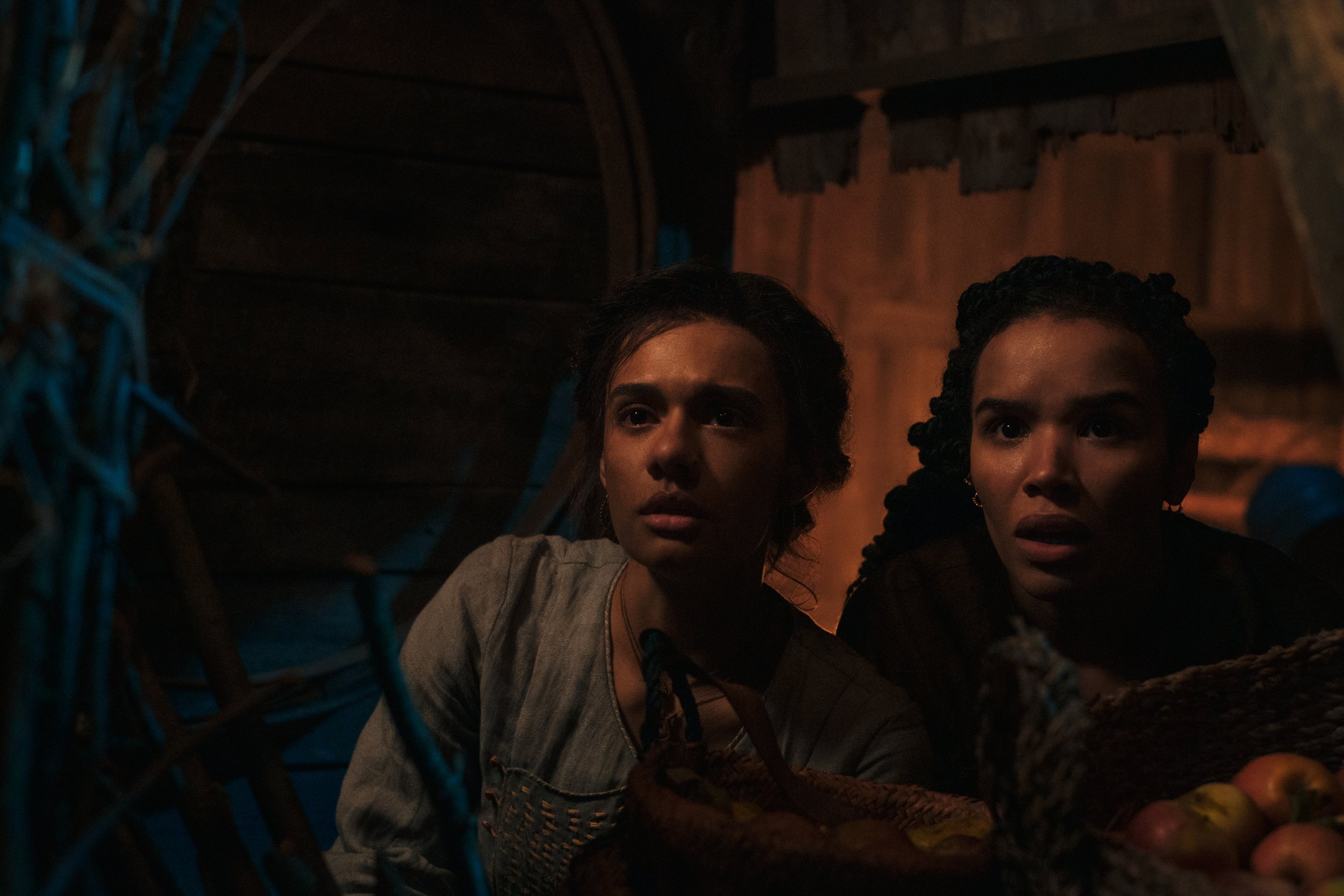 The first glimpse of the Two Rivers is from the edge of a cliff. The women braid Egwene’s (Madeleine Madden) hair as Nynaeve (Zoe Robins) tells her what it means to be a woman and prepares to initiate her into the Women’s Circle. “To be a woman is to be always alone, and never alone.” Nynaeve shoves Egwene off the cliff and into the raging water below. At first Egwene fights the river being dragged down by the powerful current, but as she surrenders, she is carried safely to the riverbanks, presumably completing her initiation.
